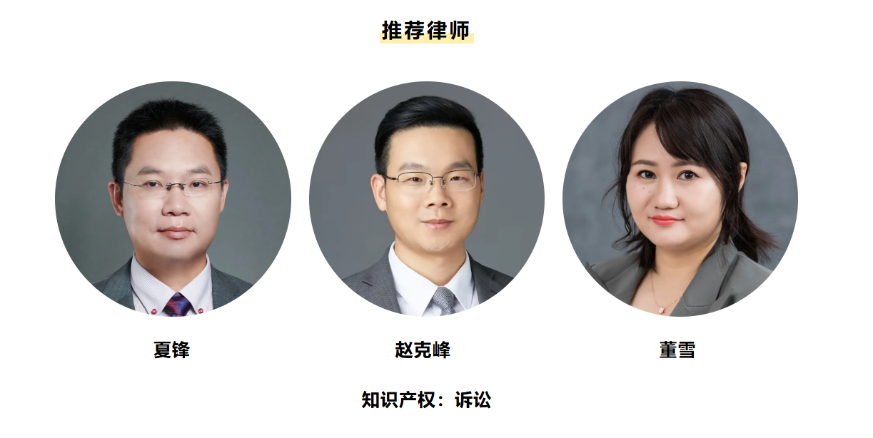 何菁律师专长于诉讼、反垄断及FRAND相关案件;赵克峰律师侧重处理复杂商标、著作权及商业秘密诉讼;夏锋律师为国内外客户就各类知识产权争议及非争议事项提供全方位法律服务。董雪律师则凭借其在不正当竞争、商标及著作权侵权领域的专业能力,尤其是在娱乐、艺术及软件等行业的丰富经验,而备受业界瞩目。